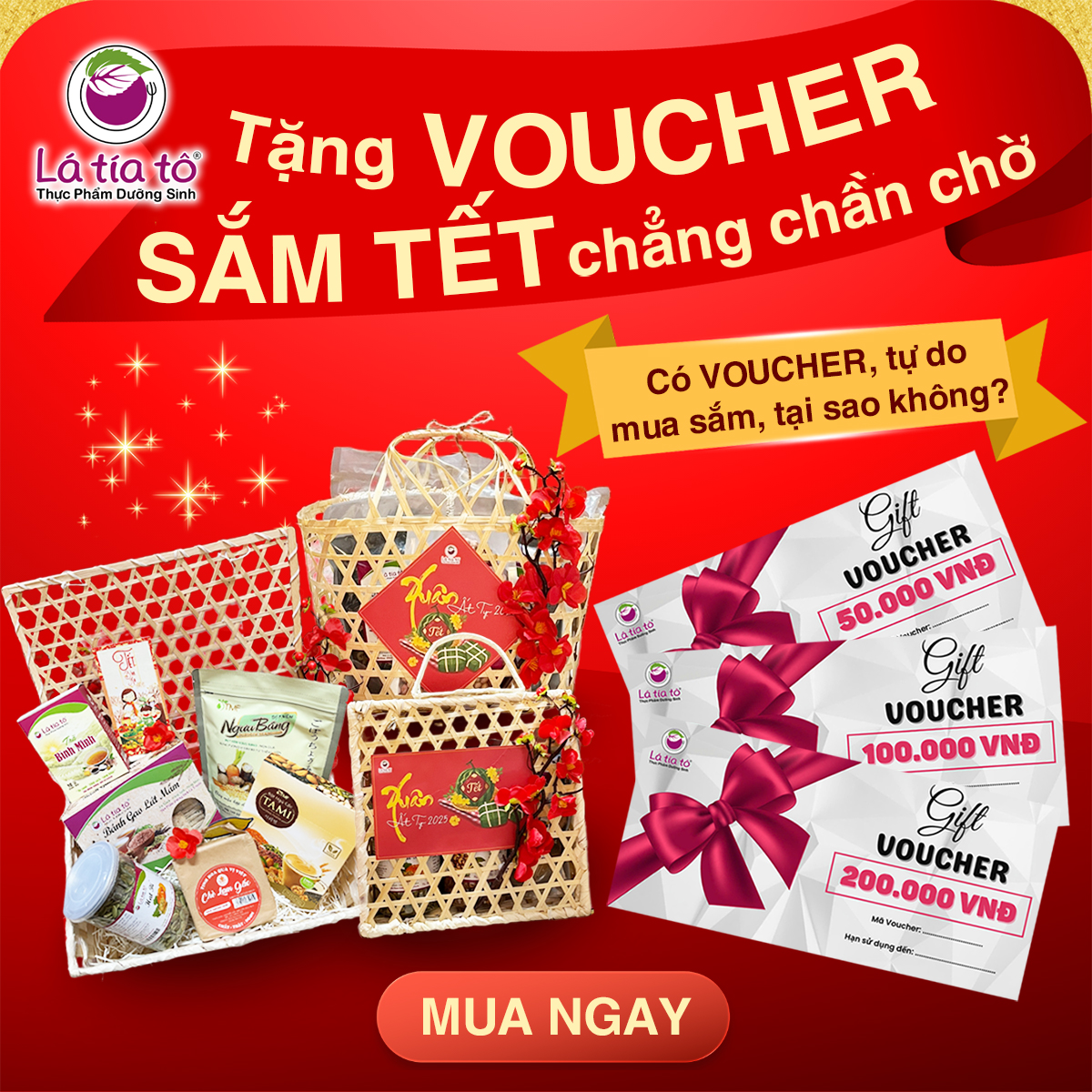 Lá Tía Tô hiện có 3 loại Voucher trị giá: 50K - 100K - 200K giúp bạn: