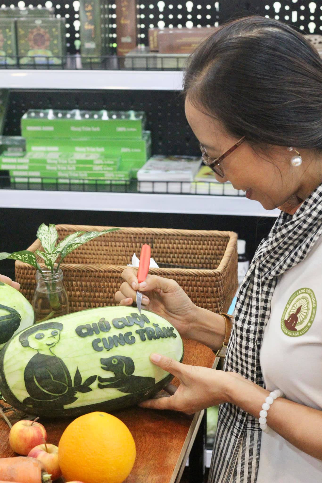 Tuổi thơ như được ùa về, từ sáng sớm nhà Tía Tô háo hức lạ thường, mua bánh, trái, khắc tỉa rồi cùng rủ nhau về chơi trung thu cùng các con![]()