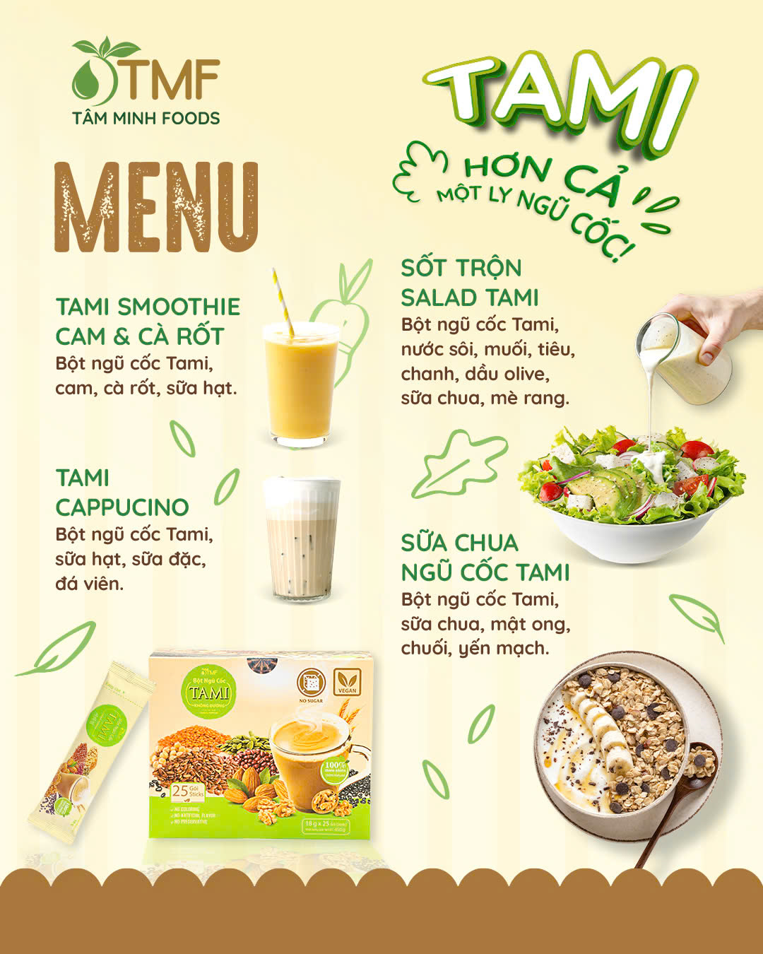 | Thành phần | Gạo lứt nảy mầm, đậu đỏ nảy mầm, đậu gà nảy mầm, đậu đen xanh lòng, hạt bí, đậu lăng, yến mạch, óc chó, hạnh nhân. |