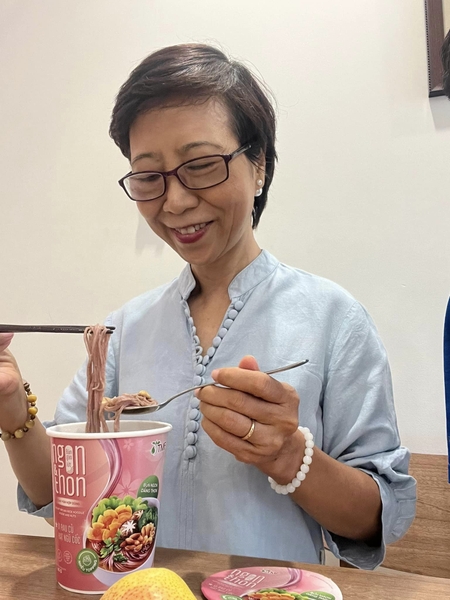 | Thành phần | Gói bún: 100% gạo lứt. Gói bột nêm: Muối, củ ngưu báng, nấm đông cô, cà rốt, miso, hành, tỏi, ớt, tiêu, ngò rí. Gói rau củ: Gạt điều, hạnh nhân, nấm đông cô, cà rốt, hành, mè đồi. Gói dầu: Dầu hướng dương. |