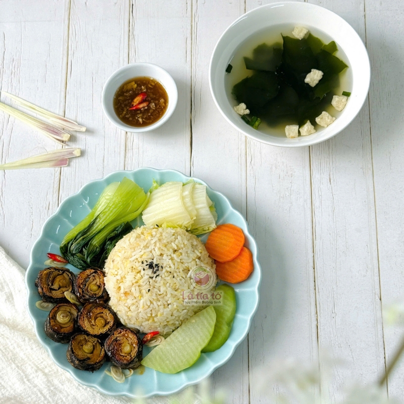 Cơm rong biển cuộn nấm là lựa chọn lý tưởng cho những ai yêu thích ẩm thực chay lành mạnh, vừa ngon miệng vừa cung cấp đầy đủ dưỡng chất cần thiết cho cơ thể. Món ăn được chế biến từ nguyên liệu tươi sạch, kết hợp hài hòa giữa ngũ cốc nguyên cám, rau củ và rong biển giàu khoáng chất.