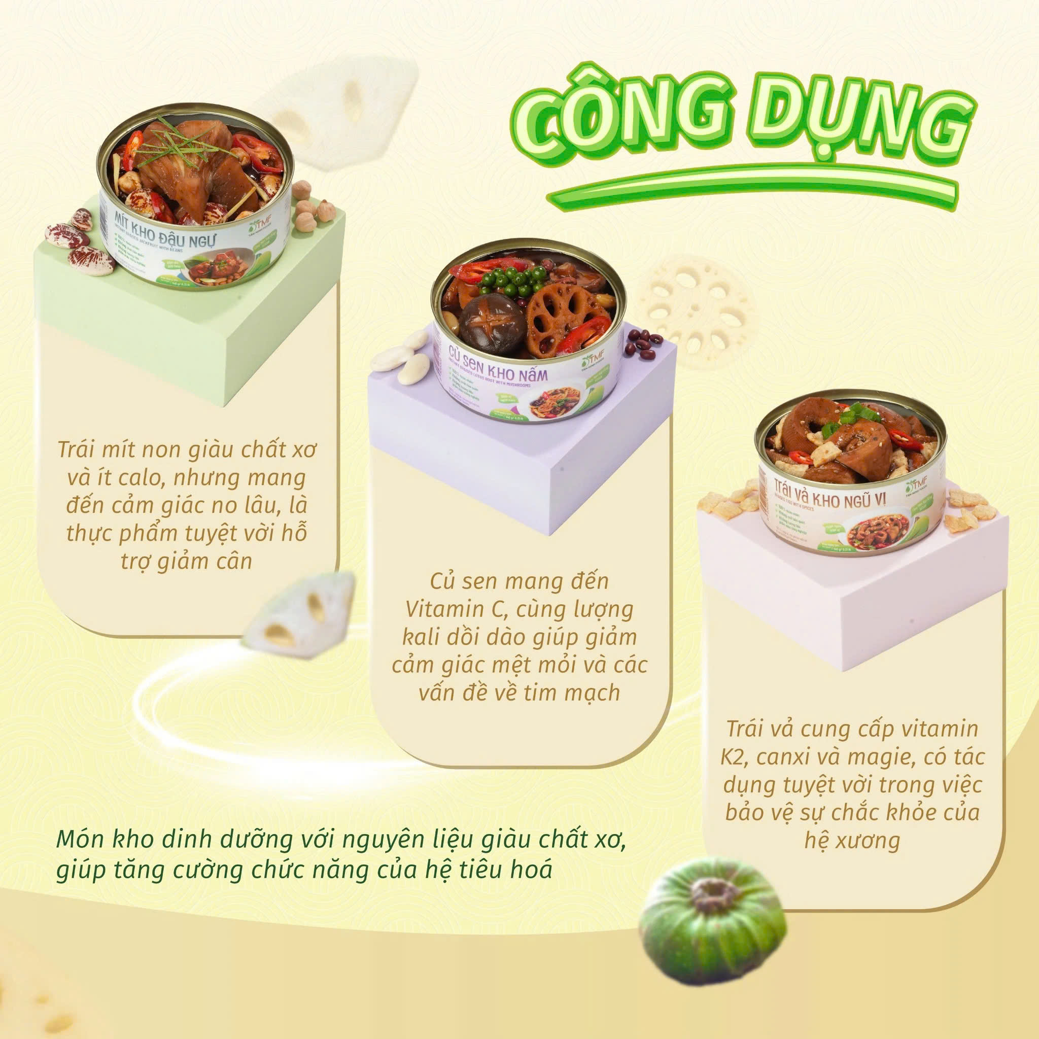 | Thành phần | Củ sen 30%, nấm đông cô 20%, đậu đỏ, đậu trắng, ớt, tiêu, sắn dây, dầu hướng dương, hành, bột nêm ngưu báng |