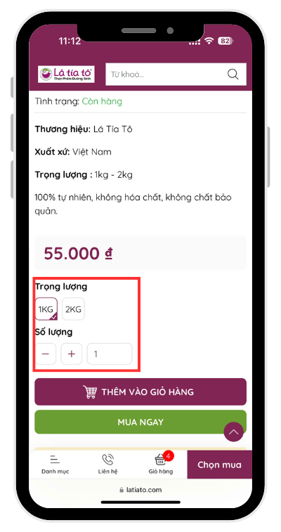 - Chọn số lượng, kích thước, trọng lượng mong muốn