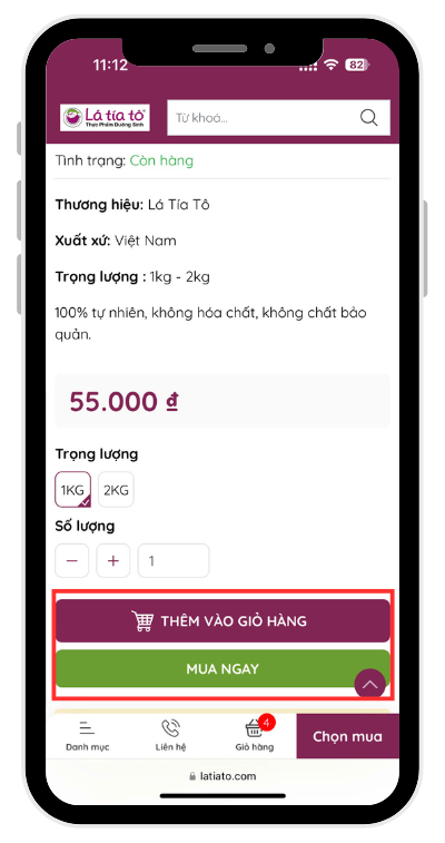 b. Hoặc bấm vào nút MUA NGAY nếu bạn muốn mua và đến phần thanh toán sản phẩm luôn