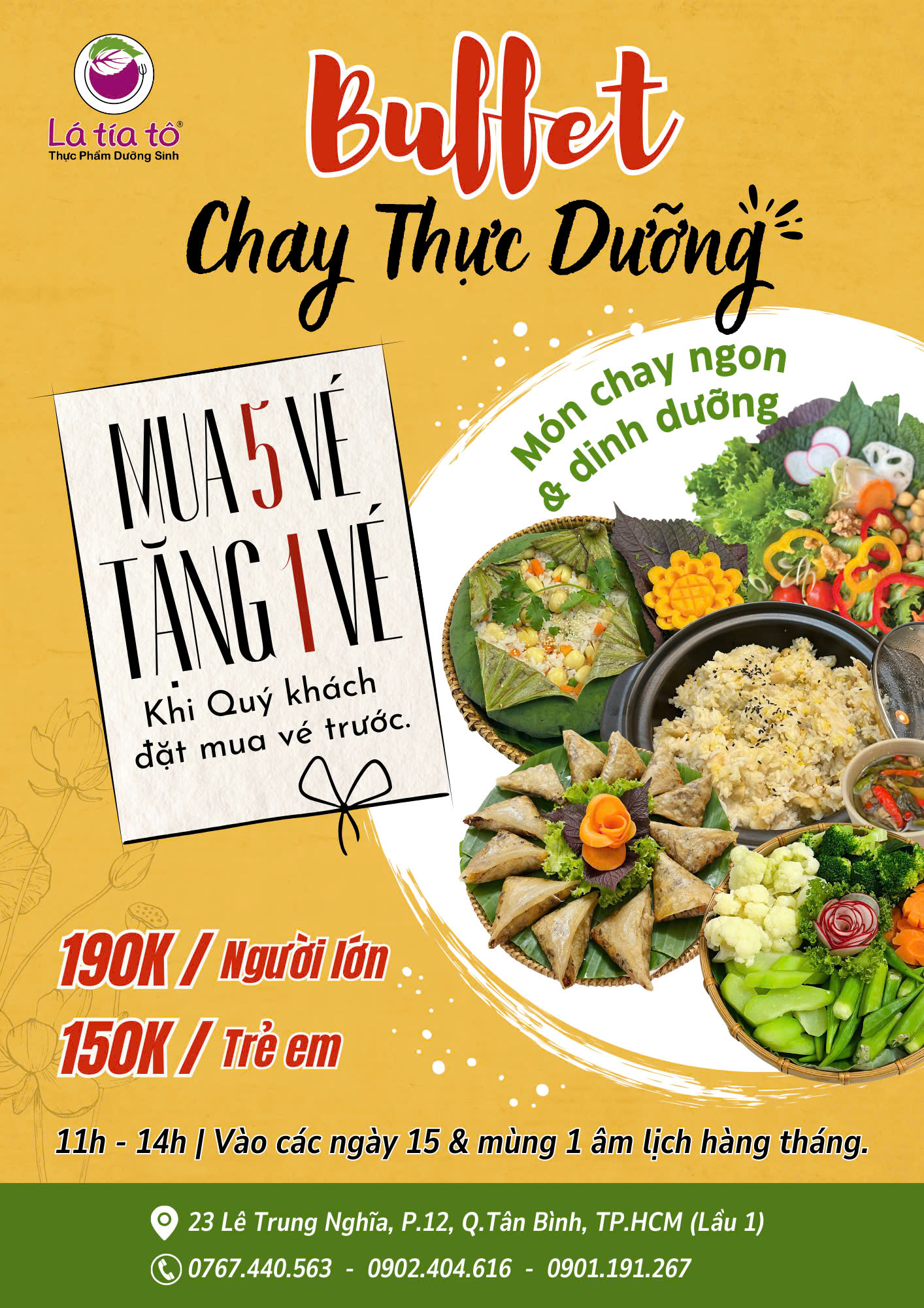 Để phù hợp hơn với chi phí nhân công cũng như chi phí cho thực phẩm dưỡng sinh dùng trong mỗi kỳ buffet, Lá Tía Tô xin phép điều chỉnh giá vé như sau: