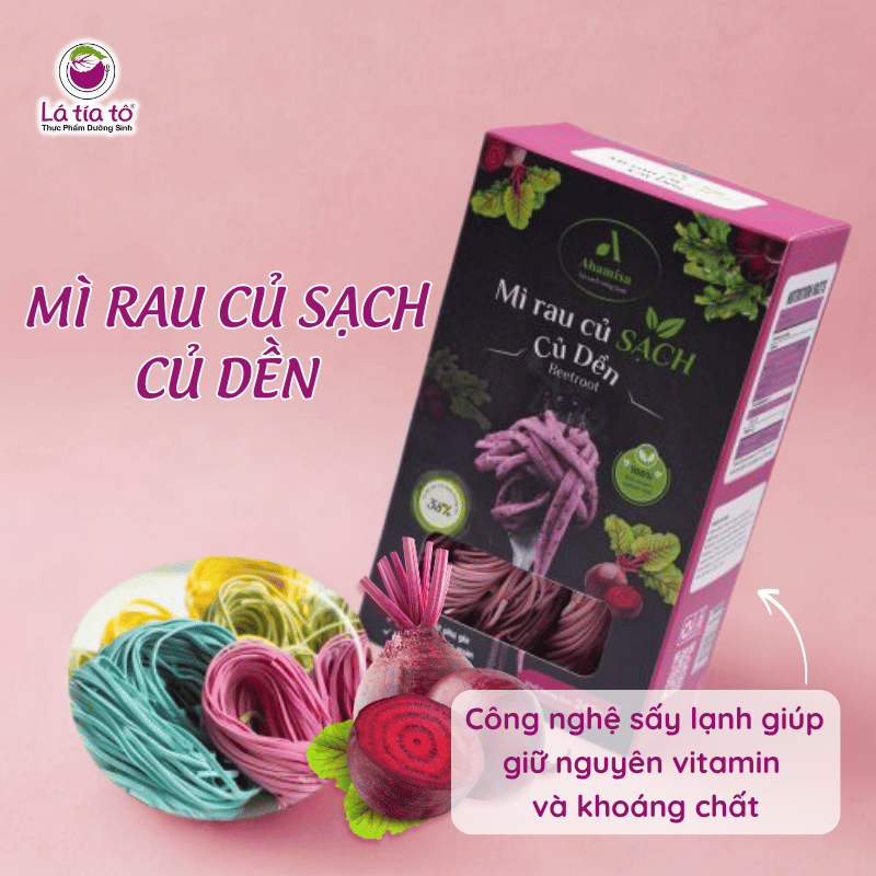 Mì Rau Củ Sạch Củ Dền – Hapimi là sản phẩm nổi bật với 38% củ dền tươi, được chế biến theo quy trình hiện đại, không chiên dầu, không chất bảo quản, giữ nguyên vị ngon ngọt và màu đỏ đặc trưng từ rau củ tự nhiên.