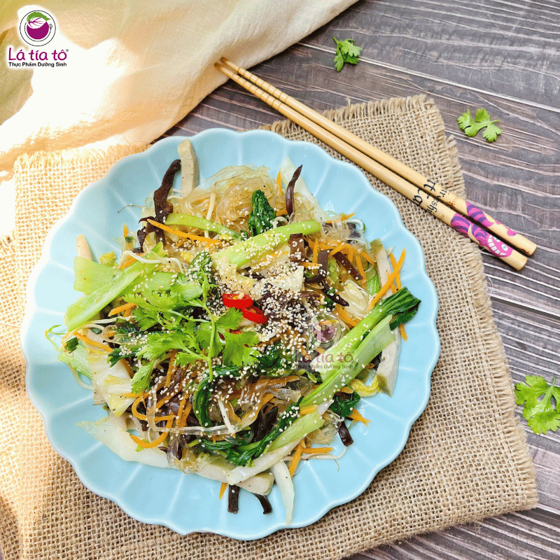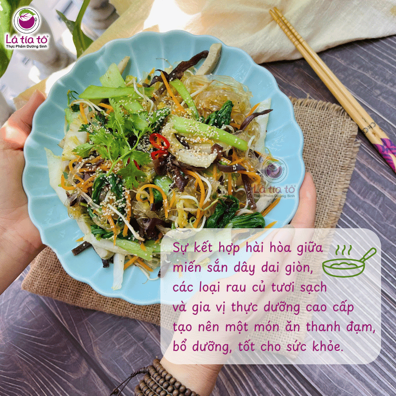 | Thành phần | Miến sắn dây, nấm mèo, chả chay, cà rốt, cải thảo, cải thìa, giá. |