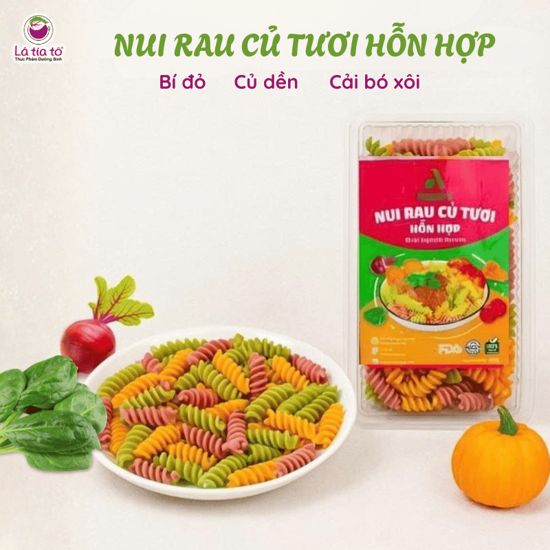 Với màu sắc tự nhiên bắt mắt từ củ dền, cải bó xôi, bí đỏ, sản phẩm không chỉ thu hút thị giác mà còn cung cấp vitamin, khoáng chất và chất xơ thiết yếu – đặc biệt phù hợp cho bé ăn dặm, người ăn chay, người ăn kiêng hoặc cả gia đình bạn trong những bữa ăn thường ngày.