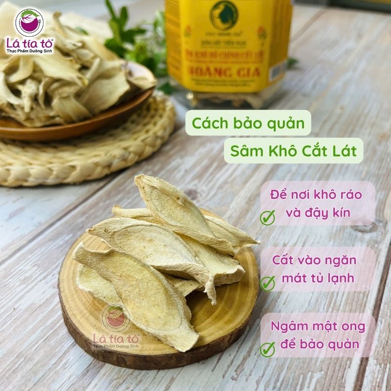 - Ngâm mật ong: Đặt lát sâm khô vào hũ thủy tinh, đổ mật ong ngập sâm, dùng dần