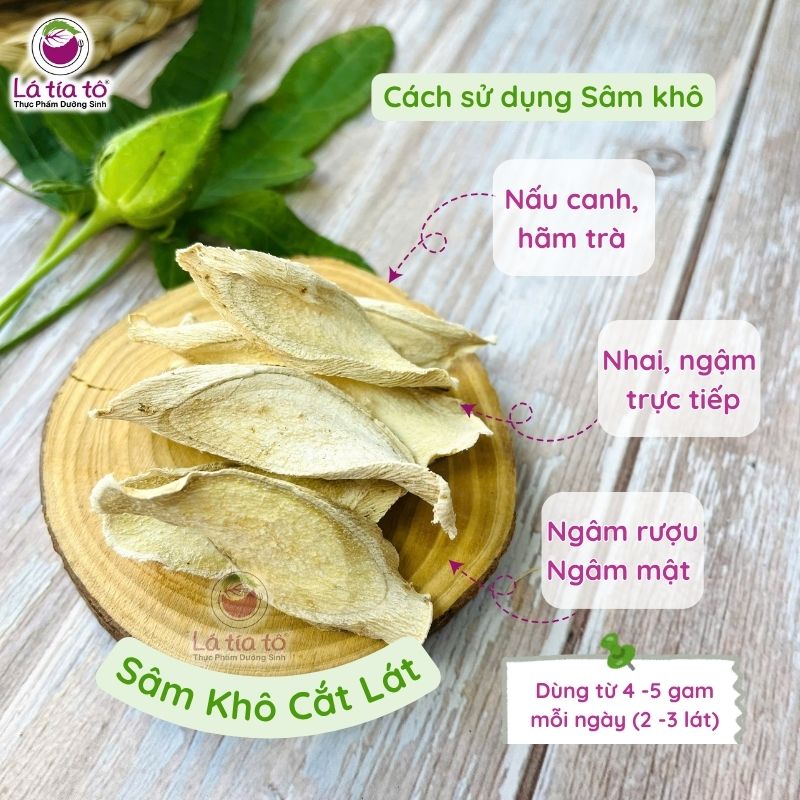 - Hầm canh bổ dưỡng: Dùng 4–5g sâm khô mỗi lần (2–3 lát)