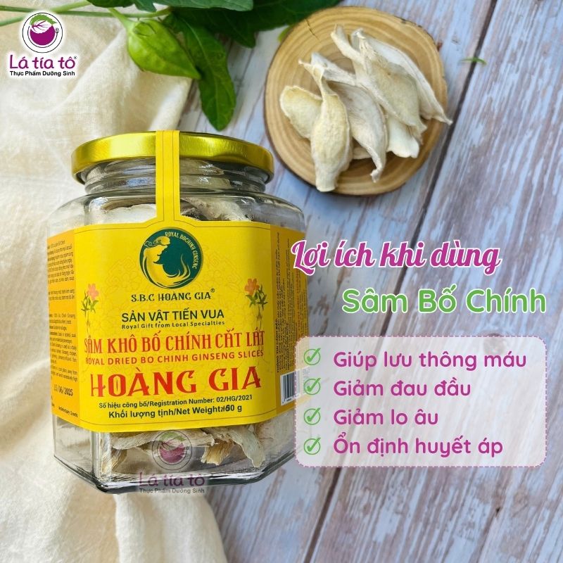 Sâm Bố Chính Khô Cắt Lát Hoàng Gia là sản phẩm cao cấp được chế biến từ sâm Bố Chính tươi nguyên chất – một trong những loại sâm quý bản địa nổi tiếng của Việt Nam. Được sấy khô và cắt lát tiện dụng, sản phẩm giữ nguyên dưỡng chất, mang lại hiệu quả cao trong việc bồi bổ cơ thể, hỗ trợ điều trị các bệnh về hô hấp, tiêu hóa, thần kinh và sinh lý.