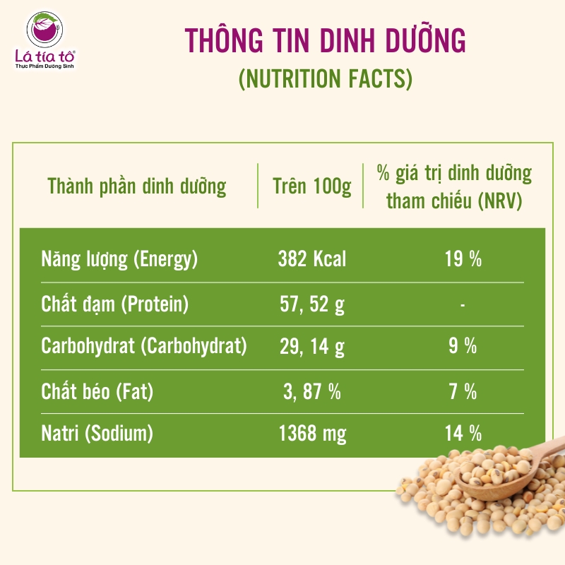 | Thành phần | Nước, đạm đậu nành, bột đậu nành, gluten lúa mì, bột mì tinh. |